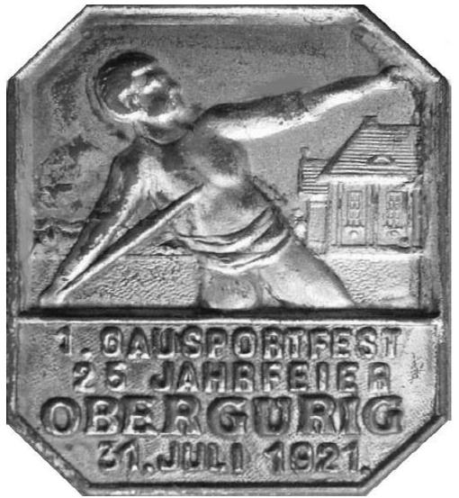 Frank Jünger berichtete in der Augustausgabe des Mitteilungsblattes über die Gründung des Turnvereins in Obergurig und zeigte ein Foto einer Plakette von den 1. Gausportfestspielen aus dem Jahre 1921 anlässlich des 25 jährigen Bestehens des Turnvereins. Ein Mitglied des Heimatvereins, der auch ein ausgesprochener Münzliebhaber ist, ließ es sich nicht nehmen, ein Original dieser Plakette bei Ebay zu ersteigern und dem Sportverein zu schenken. Für diese Geste noch einmal herzlichsten Dank. (jt)