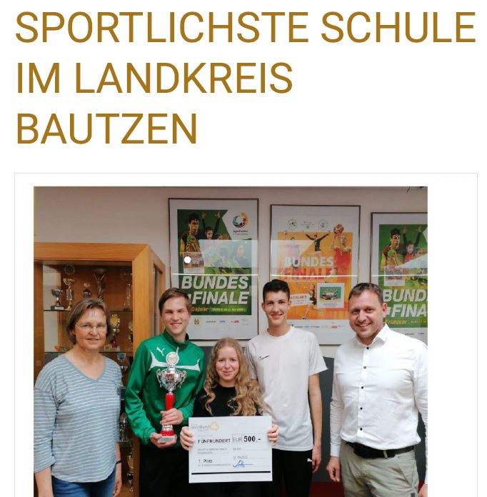 Zu den Festtagen und zum Abschied des Direktors der Grundschule Herrn Placht sollte dieser Aktionstag wiederholt werden. Am Ende dieser wieder sehr erfolgreichen Sportveranstaltung wurde dem scheidenden Direktor durch den Geschäftsführer des Kreissportbunds Bautzen Herrn Lars Bauer ein symbolischer Scheck über 500€ und ein Siegerpokal für den damaligen Erfolg bei diesem Schulwettbewerb überreicht. Neben dem Geschäftsführer des Kreisportbundes Bautzen konnten wir auch unseren Bürgermeister Herrn Polpitz begrüßen.
